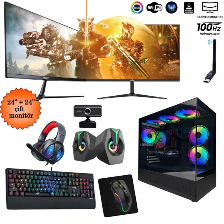 İzoly Streamer İ5-10400F 16GB 512GB M.2 NVMe RTX3060 8GB 24″ + 24″ Oyuncu OEM Paketi